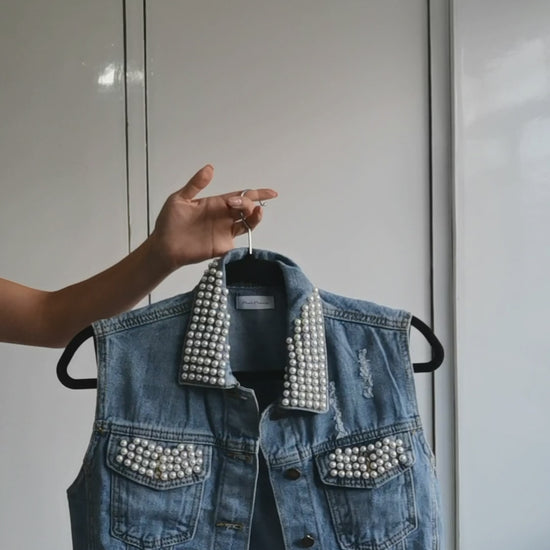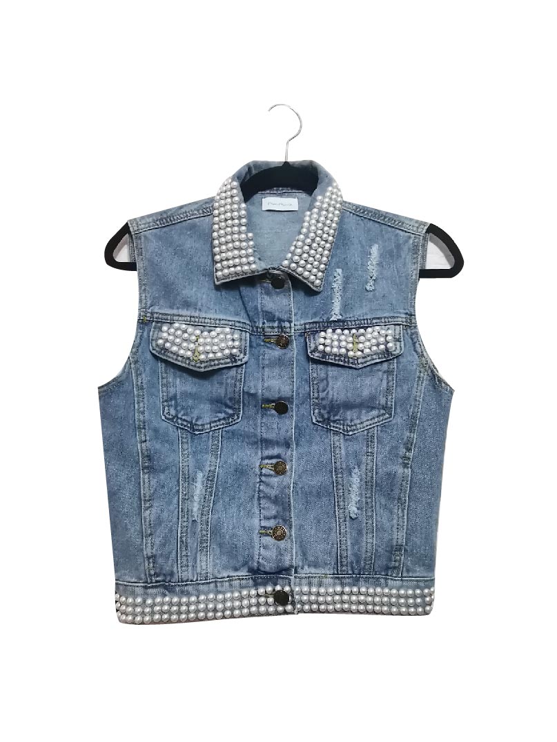 Chaleco de mezclilla con perlas – Actitud y elegancia en una sola prenda