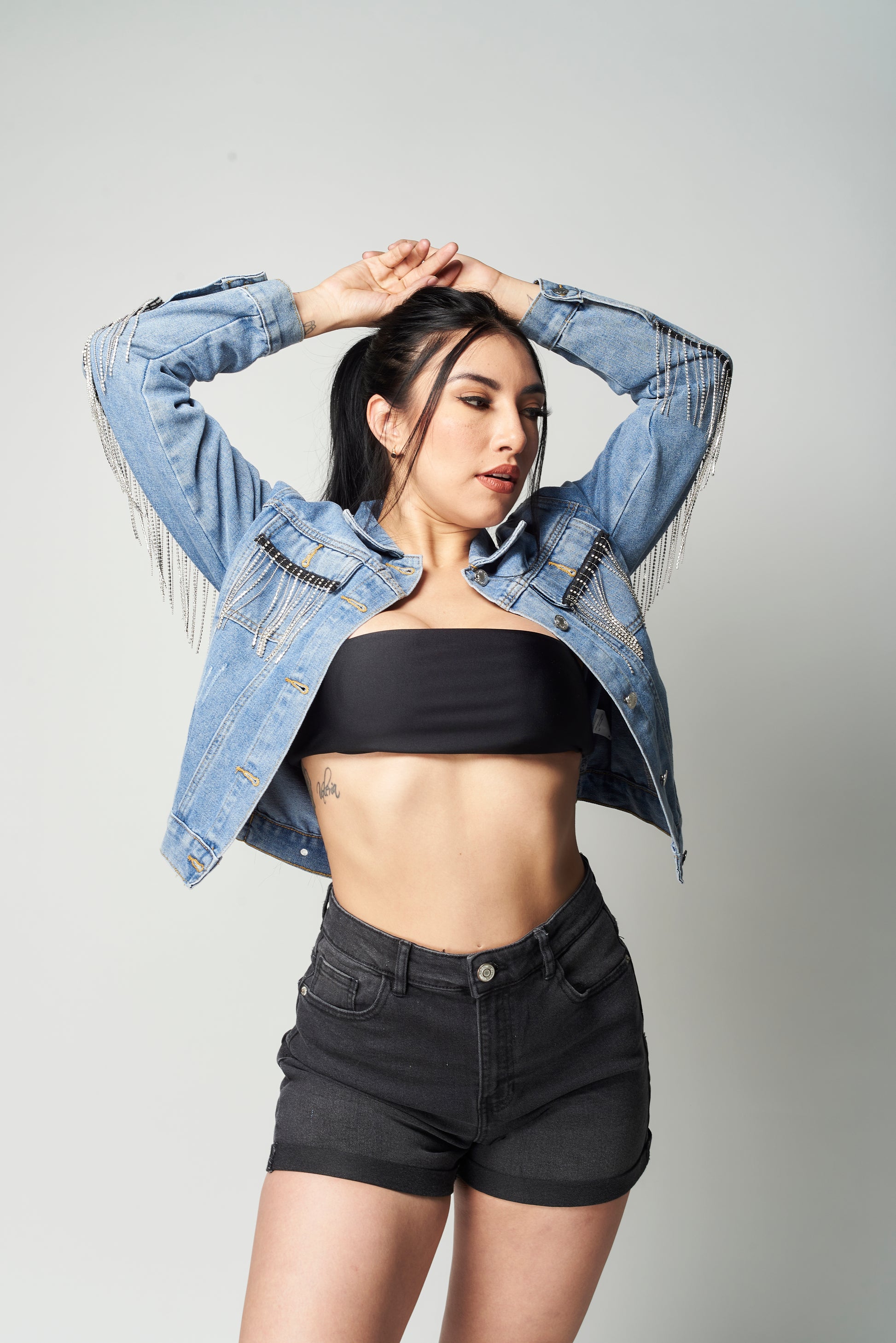💎 Denim Jacket Coco – Glamour que se Mueve Contigo