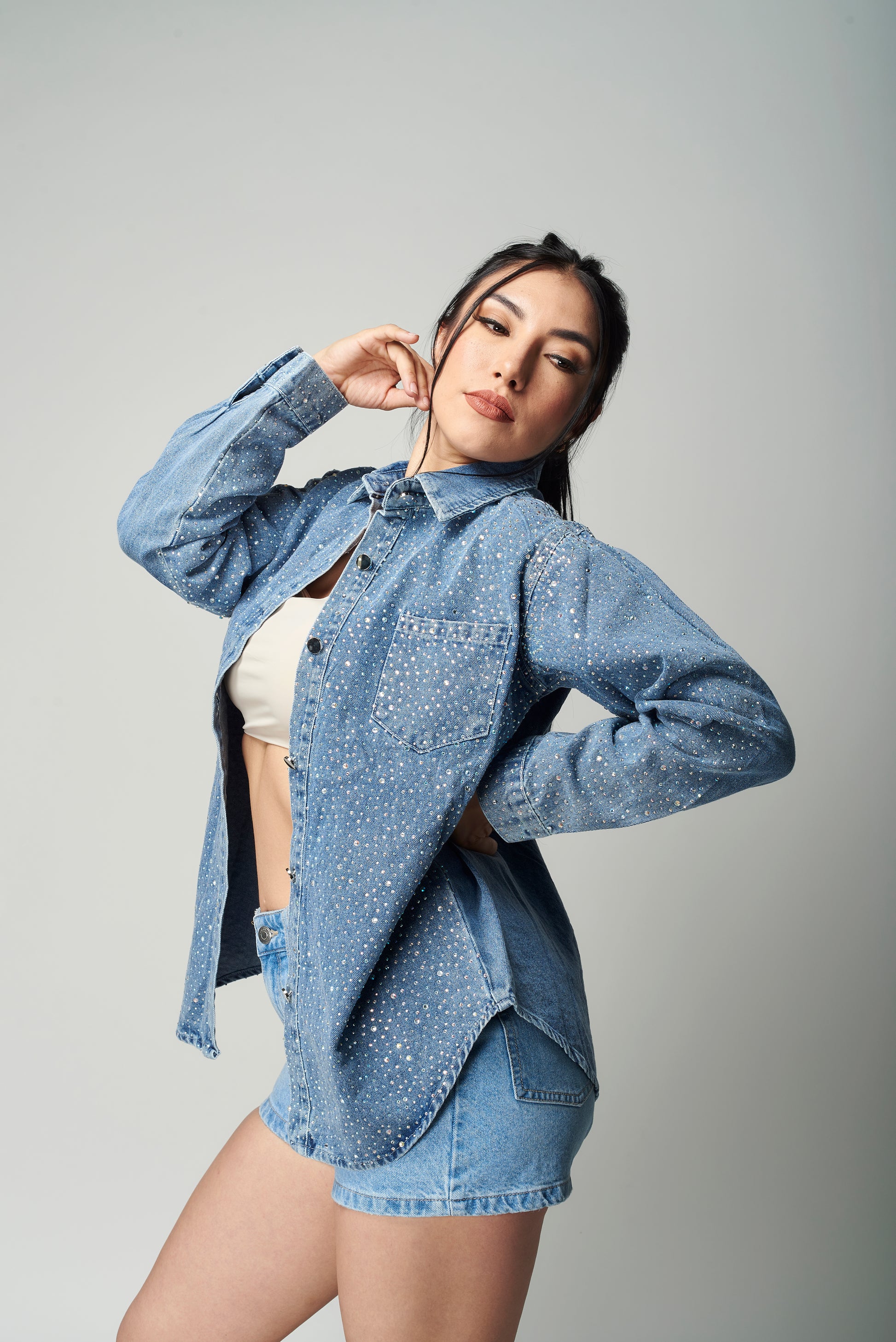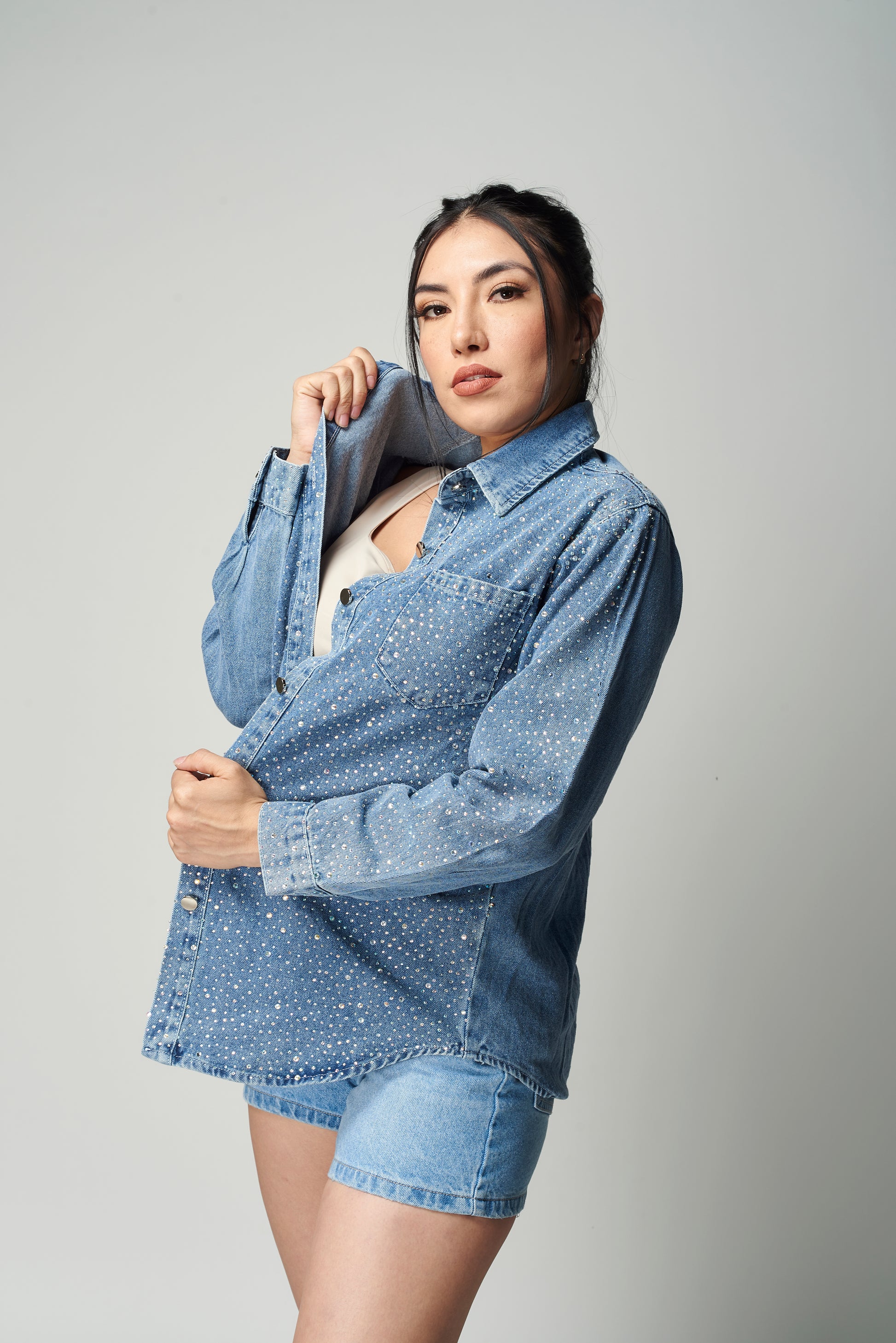 Una pieza perfecta para quienes aman el denim con personalidad , ideal para usar como sobrecamisa, camisa o incluso como vestido corto con actitud.