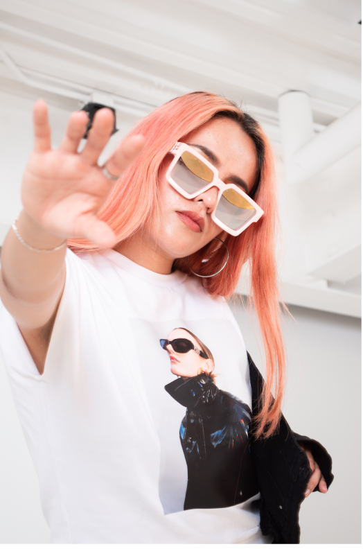 Estampado gráfico de inspiración editorial que transforma una camiseta básica en una pieza de conversación.