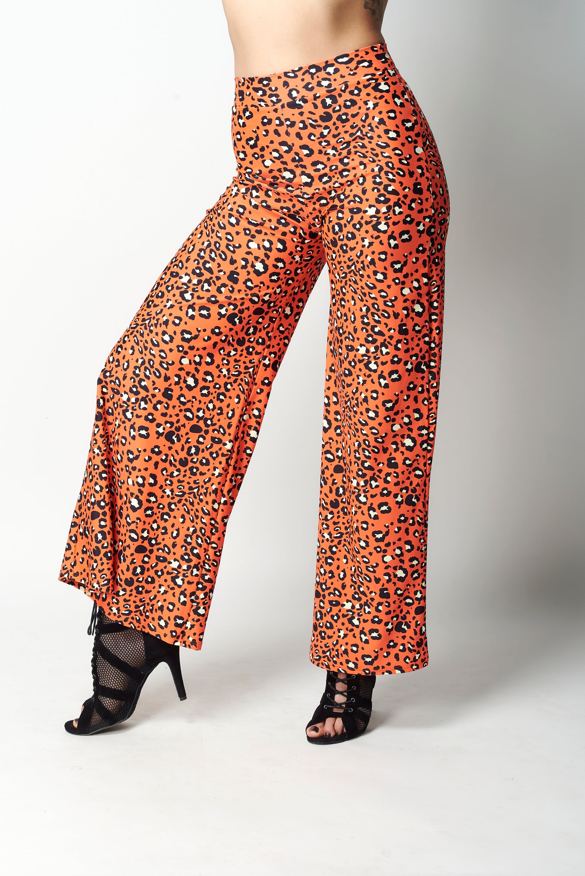 🔥 Atrévete a resaltar tu actitud salvaje con nuestro pantalón flare de animal print en tono naranja vibrante.